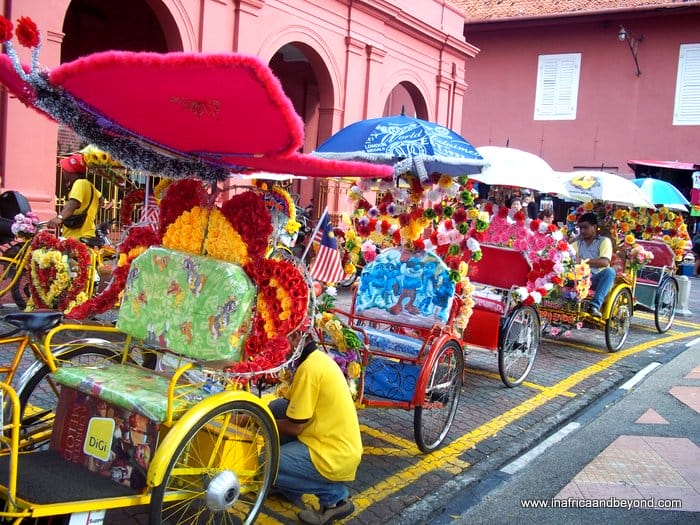The area around The Stadthuys was a hive of activity. Stalls selling souvenirs and refreshments lined one street. On the other street, colourful flower-adorned trishaws lined the tourist areas, blasting “Uppa Gangnam Style” from the little - but loud - boomboxes at the back of their modified vehicles. They vied with each other to take tourists on mini-sightseeing tours. After a few drivers tried to solicit our business we agreed to go for a ride on one – without a boombox. As they were two-seaters and we were four, our driver asked his uncle to take two of us and we rode in tandem.