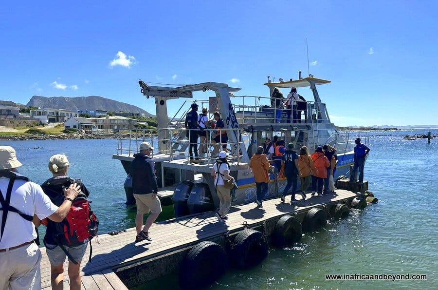 A safety briefing was then screened. We were kitted out in life jackets and handed waterproof jackets, after which we took a short walk to the Kleinbaai harbour, where we boarded our boat, the Dream Catcher.