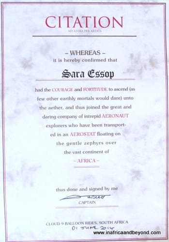 It was a magical and surreal experience, one that had been on my bucket list for years. I couldn’t believe that I was finally doing it and not just with any balloon operator. Our charming pilot was the original Bill Harrop , who has been flying people on magical balloon rides since 1981. He entertained us with amusing anecdotes as he expertly navigated the gigantic balloon through the sublime surroundings. After a soft landing an hour later, we celebrated with drinks as we were awarded “citations of bravery”, personally signed by Bill.