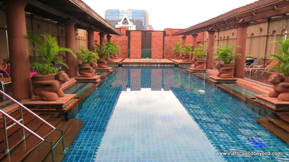 My favourite part of the hotel was the luxurious rooftop swimming pool and jacuzzi area. The carved pillars and statues reminded me of ancient Roman Baths. My husband and kids loved it too and we spent a lot of family time here under the night sky with the pool all to ourselves. Comfortable sunbeds lined the pool area and the views of Bangkok from high up there were expansive.