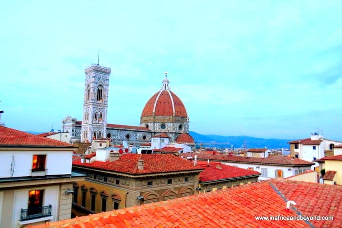 We stayed at a hotel called Vasari Palace. It had a very artistic feel to it - with lots of paintings - which was quite appropriate considering it was in Florence. Medieval knights and dames were painted on the doors, to give the effect that they were guarding the room. On a side note, my Tripadvisor review on this hotel was one of my most read reviews on their website. If you have a higher budget, then book at one of the best luxury hotels in Florence.