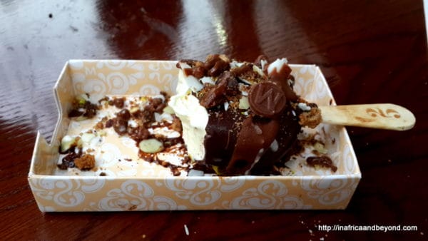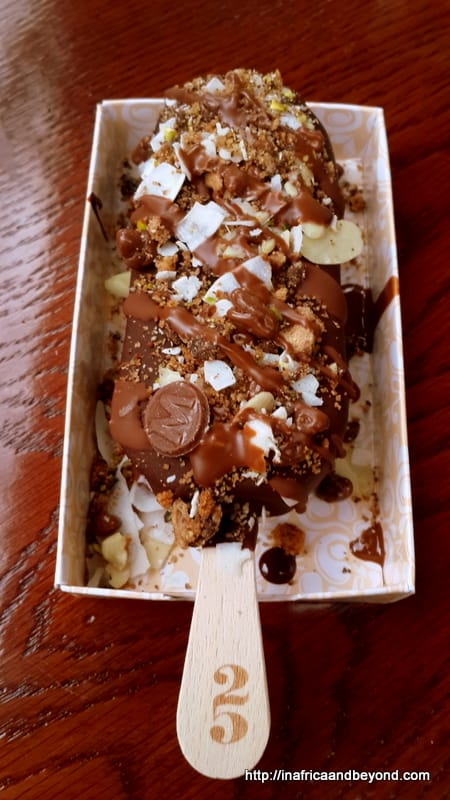 The summarised process is as follows: purchase an ice cream, dunk it in a white, dark or milk chocolate dip and choose your three favourite toppings.