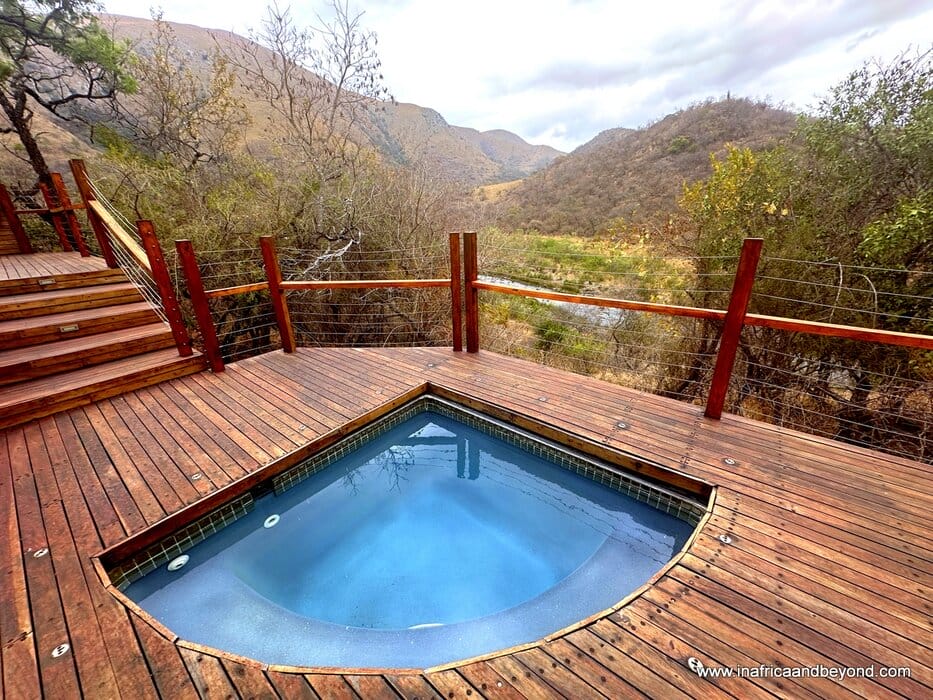 The outdoor ball-and-claw bathtub, rain shower and plunge pool, perched on our private deck overlooking the river, were all perfectly positioned to capture uninterrupted river views, and we loved relaxing there. It was from this very deck that we witnessed the lunar eclipse and blood moon in the clear night skies, untouched by artificial light.