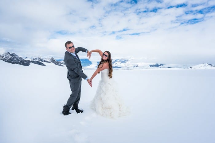 We have an anniversary tradition in which I wear my wedding dress and we take pictures in a different destination. This year, we chose Alaska and flew into the Chugach Mountains onto Colony Glacier. Landing on the snow covered glacier on a seaplane was pretty interesting! It was hard to see what was the ground and what was the sky!