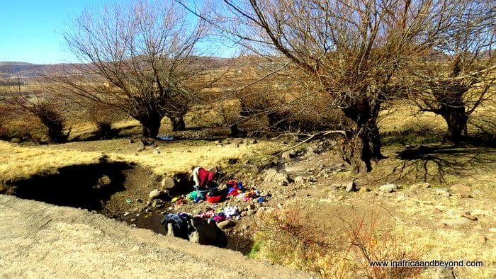 After breakfast the next morning, we drove through the capital city and out into the mountains. For a capital city, Maseru did not seem very densely populated. As we ventured further out, we saw how different it was from South Africa. The terrain became very mountainous, more and more so as we ventured deeper into the country. For miles, we didn’t see any other cars. There were sporadic clusters of houses and Basutho huts, women washing clothes in rivers, and shepherds wrapped in the traditional, colourful Lesotho blankets, herding cattle.