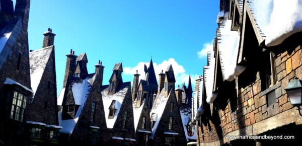 We walked through the snow-capped village of Hogsmeade, passed the Three Broomsticks Inn and sampled the pumpkin juice, saving the (non-alcoholic) butterbeer for later. Honeydukes was doing a roaring trade with chocolate frogs, Bertie Botts Every Flavour Beans and other wizard treats.