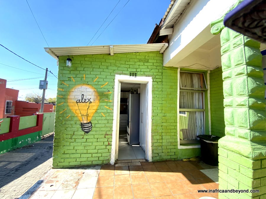 The Maboneng Township Arts Experience turns township homes into exhibition spaces for local artists. Their mission is to empower locals and create jobs while promoting arts and culture. Although it began in Alex, it now includes townships around the country. Prior to Covid-19 times, these tours would take visitors into the homes. We visited one of the participating streets, and although we did not go inside, we still enjoyed looking at the brightly painted houses and photographing them. Virtual tours are also available.